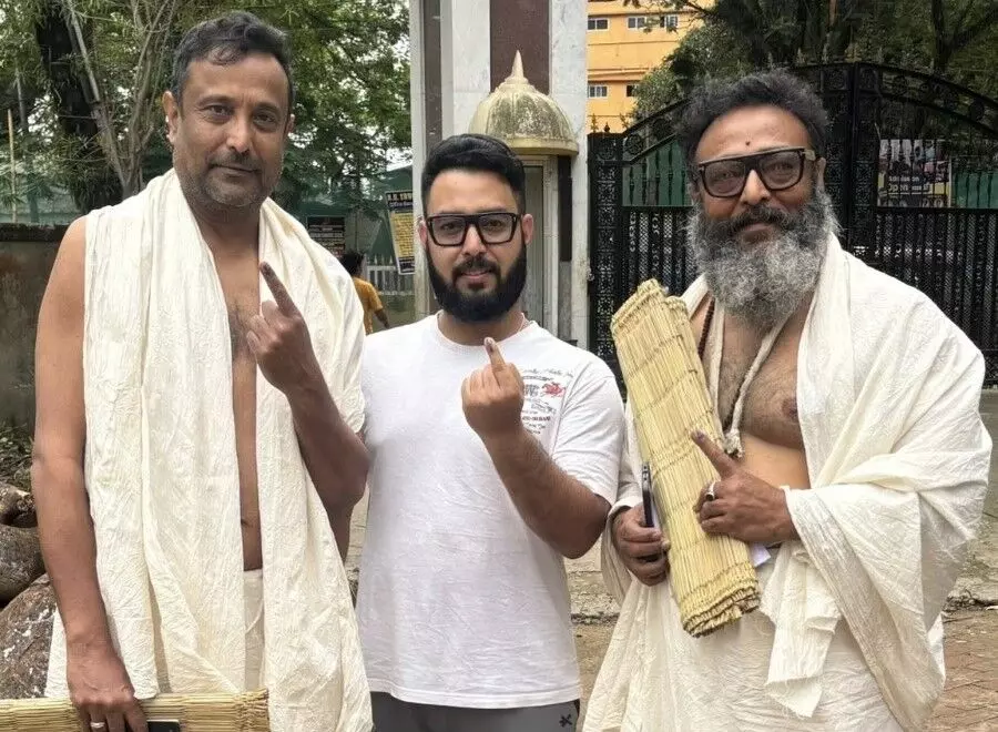 Accompanied by his brother Sib Shankar Bhattacharjee and son Dr Samujjwal Bhattacharjee, his quiet act stood as a powerful affirmation of democratic duty in the face of personal grief.
